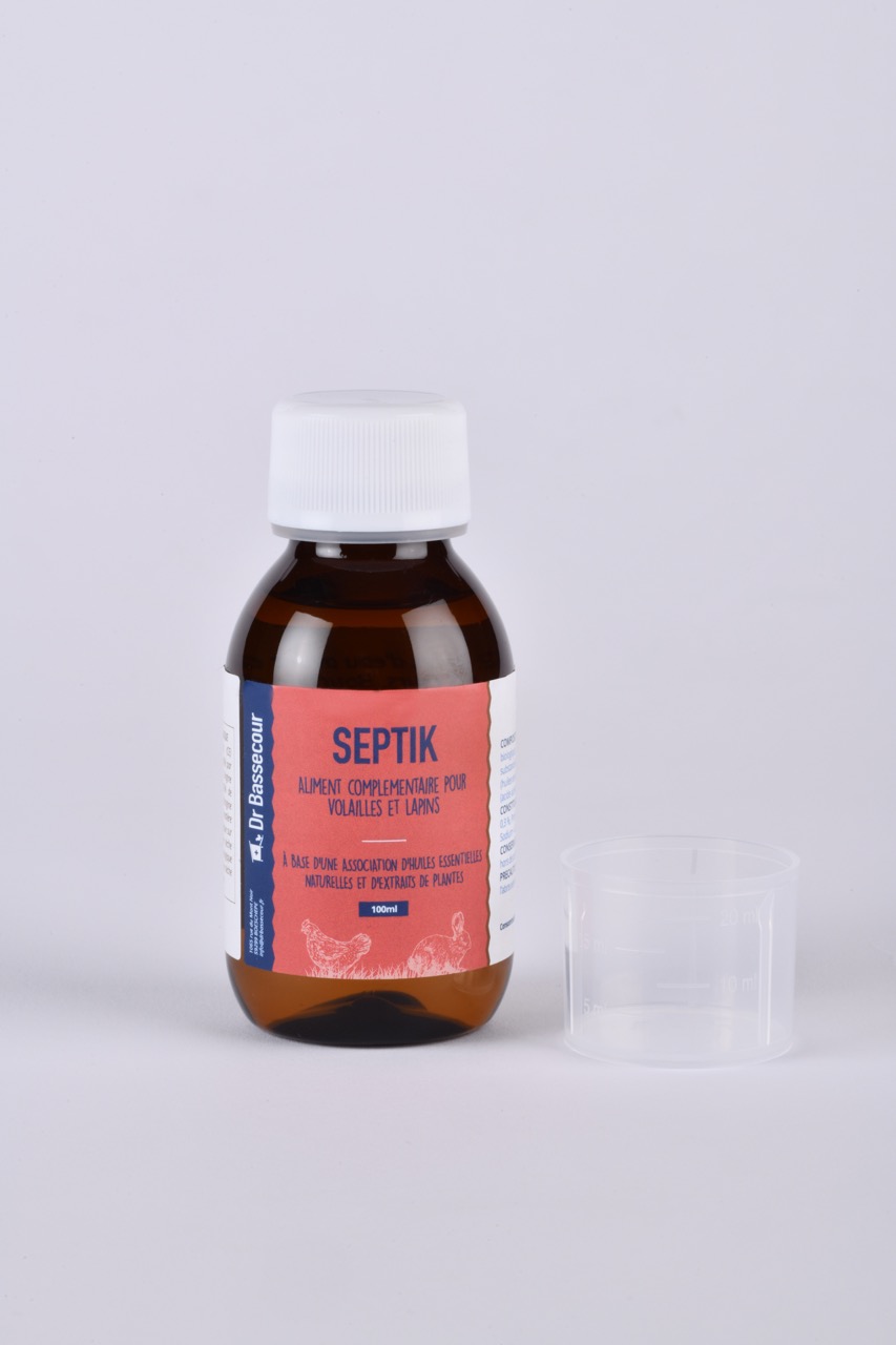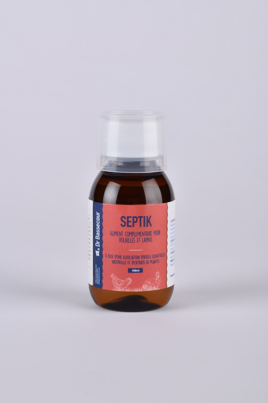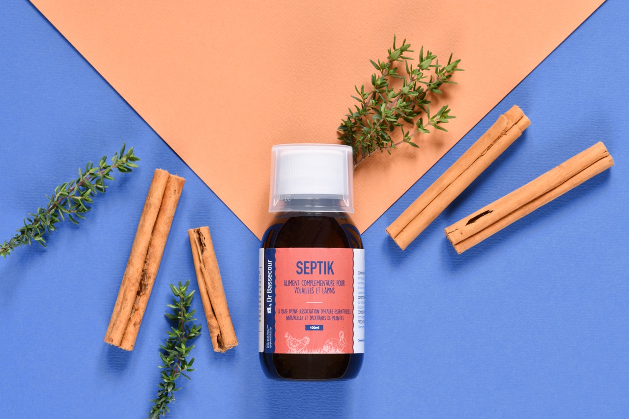 SEPTIK est fabriqué à partir d’un mélange d’huiles essentielles naturelles de cannelle et de thym, qui sont traditionnellement recommandées dans la lutte contre les troubles infectieux de la volaille et du lapin, comme le coryza.