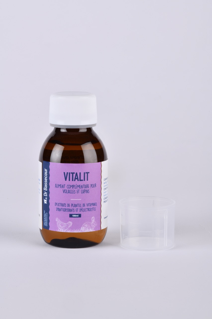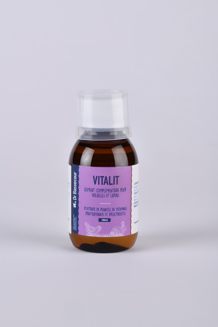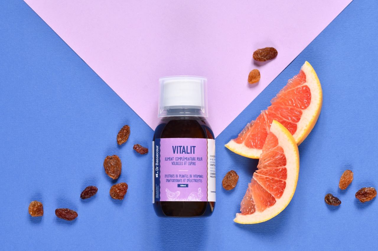 VITALIT est un aliment complémentaire pour volailles et lapins. Il est fabriqué à partir d’un mélange de vitamine C, de vitamine E, d’extrait sec de raisin, d’extrait de pamplemousse et de chlorure de magnésium d’origine marine. L’effet antioxydant des vitamines et de l’extrait de raisins renforce le bien-être et stimule l’immunité des animaux en période de convalescence, de forte chaleur et de démarrage des poussins. Les électrolytes (sodium, magnésium, potassium) favorisent la ré-hydratation lors de ces périodes de stress.